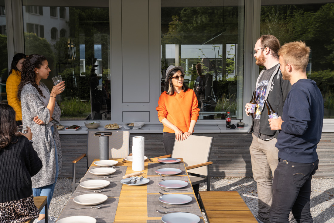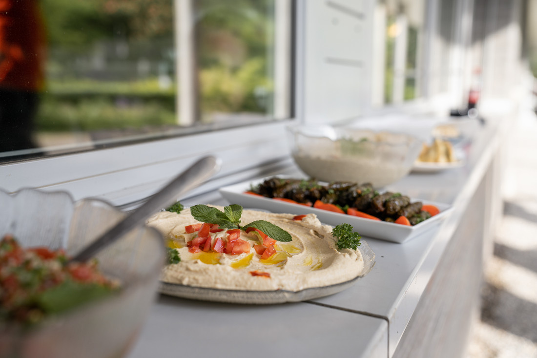 Da mein Onkel in Aarau einen Take-Away Stand mit libanesischen Speisen betreibt, lud ich ihn kurzerhand ein, seine orientalischen Speisen bei uns auf der Terasse zu servieren. Gesagt, getan: Wir wurden mit frisch gemachten Falafel, Hummus, Baba Ganoush, Taboule-Salat, Warak Enab und weiteren arabischen Delikatessen verwöhnt. Nach der Homeoffice Zeit der Corona-Zeit, genossen wir es sehr, den Abend mit Essen und Getränken gemeinsam auf dem Sitzplatz hinter unserem Büro ausklingen zu lassen.